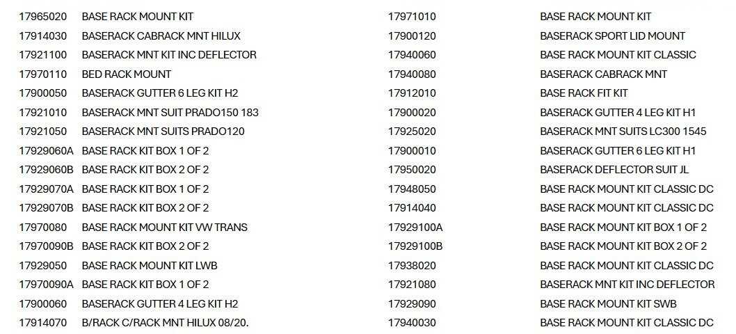 get 50 % discount on any (1x) of the following base rack fitting kits